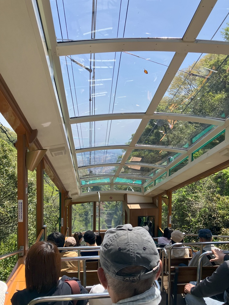 The walk towards the cable car station was quiet as usual, it may be because the path was in the woods and less travelled. I arrived at the cable car station at 13:10, there weren't many people waiting so I quickly bought a ticket and joined the line. The next car runs in 10 minutes so I came in at the right time. Passing the gate and took my seat. The tram moved slowly and steady with many passengers, I get to see the nice view under sunny sky,