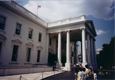 As hotel employees suggested, we left our hotel very early in the morning to get the ticket for the White House tour. There is a long line already.