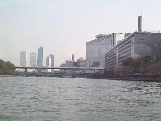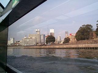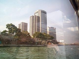 The Aqua Liner is a trip by a boat which going through many part of Osaka from the water. The cost is 1,830 Yen ($17?), and takes about a hour. This boat is designed especially for this area. I will show the picture later, but it can change its height, in order to go through under the bridges when the sea level is high, due to the