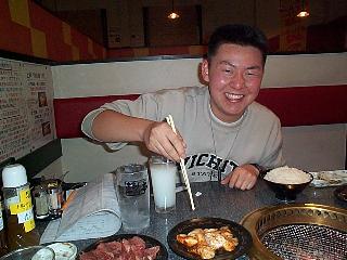 The dinner was "yakiniku". You take raw meet and burn it on a grill.
