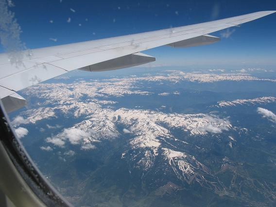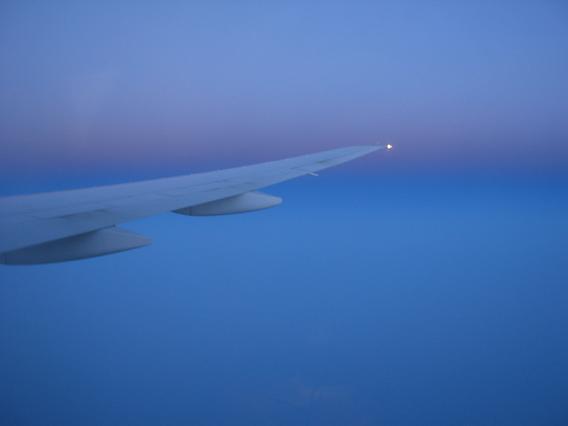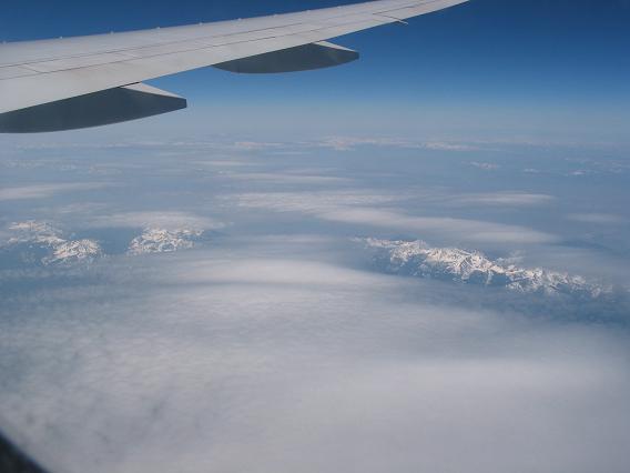 The boarding was started on time at 5:30pm. They did not get me on the plane right away because I forgot to remove my mask. (Another SARS related problem?) A person sitting next to me did not speak Japanese, and seems not understanding English much. She did not eat dinner, but had breakfast. I did not hear she said a word so I must assume this is going to the U.S. for the first time. (Or just doesn't like me.) The only thing I know is that she was going to Memphis, TN. The airplane tookoff at 6:30pm, It was a bit cloudy so I did not get to see places much and reached to FL340 in about 30 minutes.