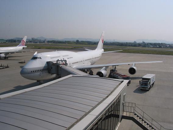 Komaki (or Nagoya) airport is shared with Japanese Air Self Defense Force (JASDF) and I get to see two T-1 jet trainers took off from the runway at the same time. They maneuvered in pretty cool manner, man. I want to be a jet pilot! When we took off, I also saw a F-2 (modified F-16) at a hanger of Mitsubishi Aerospace Center. My plane tookoff at 9:05am Seat A60