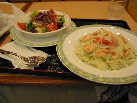 Lunch (800Yen). This come with salad and a fried rice (shrimp and crab meat on top)