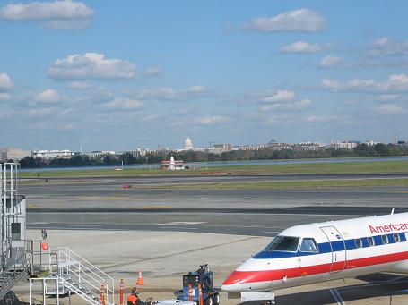 There is a funny rule about all flights go to Washington D.C. That is, nobody is allowed to stand up from seat 30 minutes before arriving the D.C. The captain of the plane gave us 20 minutes warning ahead and everybody was awfully quiet for the last 30 minutes. The airport is located right by Potomac river, and the plane approached from northwest but landed on south so it was so weird to see a big airliner makes left 180 degrees turn above the water right before the touchdown. After arriving to the airport. I wanted to eat but I also needed to pick up my baggage so I decided to skip it. (Later I also find out this was another BIG MISTAKE!) At least the plane arrived 5 minutes ahead so I am amazed.