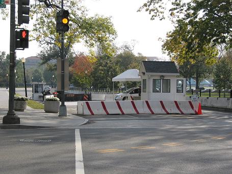 The surrounding of the White House has changed a lot too, All car going in the street in front of the house must stop at gate, protected by the concrete barricade. Then the car must go through bomb sniffing dog, then the steel gate. (see the picture below)