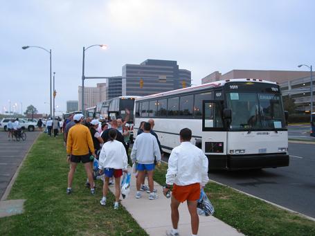 You use buses to get to the start line from the parking lot by near the Pentagon.