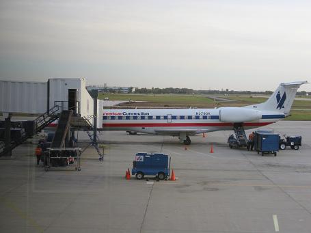 From To Flight Departure Arrival Reagan International St. Louis AA2823 12:59pmET 2:16pmCST MD-80 St Louis Wichita AA5861 3:40pmCST 5:10pmCST EMB-140 I wake up at 6:00am. As I expected, it is so hard to move because my body is so stiff! Outside was still raining. The news says the rain will continue until evening. I had breakfast at 8:00am. I took extra apples so I can eat when I get hungry. Packed up all the stuffs.