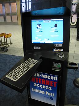 Internet Station, You can either use this computer to log on the internet, or use your computer with an Ethernet cable. Wichita also had internet access but you had to bring your own computer. I think this one is better except for the poor looking keyboard. This one takes both credit card and cash.