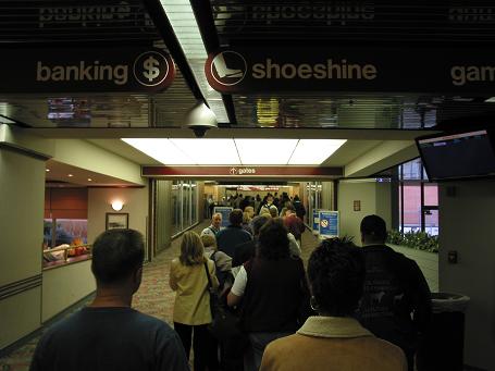 A long line for the security check. People are blaming students who are on spring break, but I think I was the only student there.