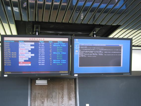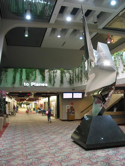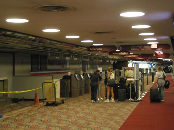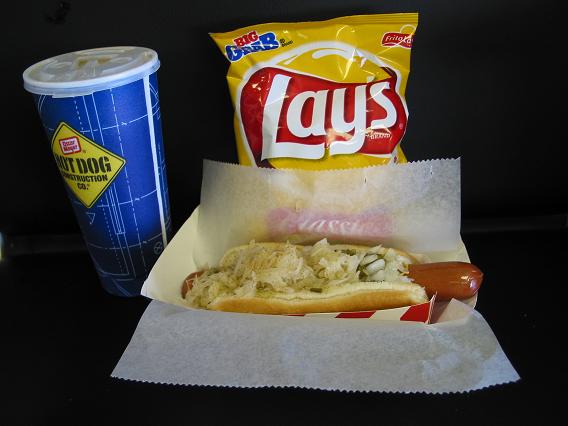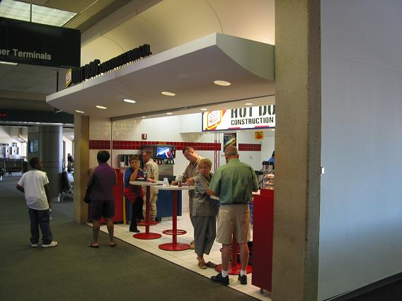 I arrived at the gate around 10:20am but my flight is not available until 1:15pm. I need to eat some... will have to spend about 3 hours here. Ironically, there was a plane leaving to Wichita few gates away around 10:30am, so I wished I could be on that plane. I wonder why there are so many uniformed soldiers around? It's hard on them when all of the people in uniform have to take their boots off. I ate my lunch at Hot Dog Construction Company I had a NYC combo for $5.75? Around 11:20am