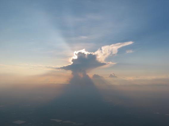 Somewhere in the U.S., the plane had to maneuver through the thunderstorm clouds. They actually reached to this altitude.