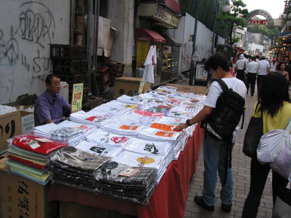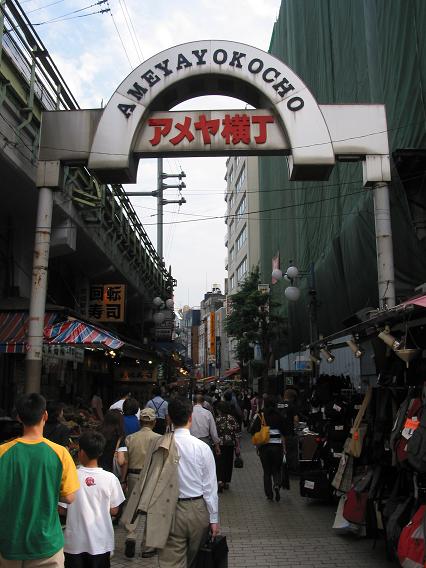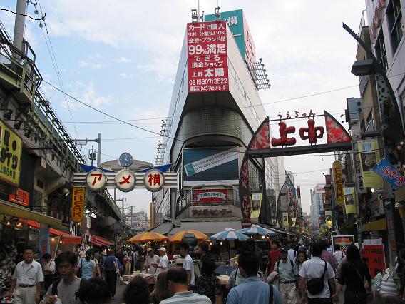 Between Ueno and (next station) the streets nearby the railroad has a district called "Ameyoko", or "Ameya Yokocho (Ameya Street)". This place has many different kinds of stores. You can buy some of those wrong named brand named clothing's or simply fake ones.