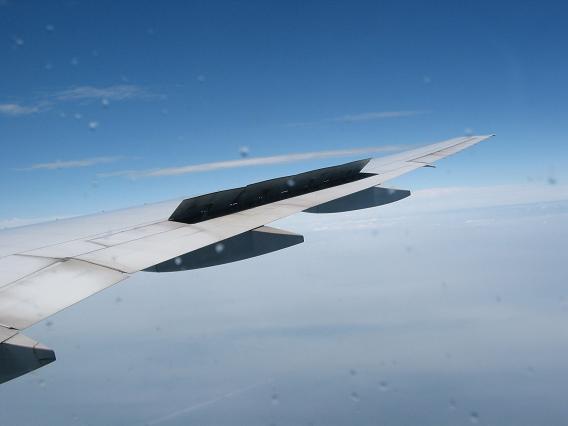 Water condensation can be observed on the upper surface of the wing at lower altitude. You can study the Bernouli's law.