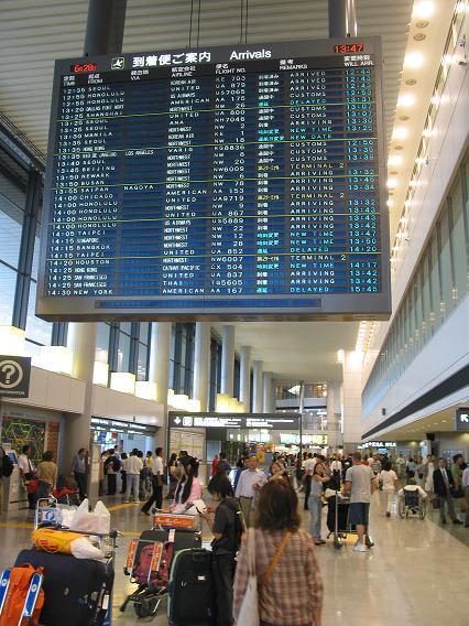 The plane arrived in Narita Airport at 12:45am on Monday. The plane landed on the expanded runway, which has a couple of tight corners on the taxiway. A girl who sat next to me was bound for Taiwan. She is a Taiwanese but her parents live in the U.S. She is going to take a summer class in a university there so I think that is pretty cool. She will be staying with her aunt for a month.