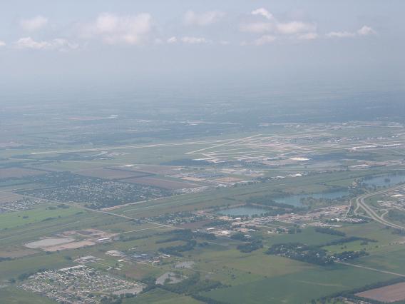 Wichita Mid-Continent Airport, we are almost there. It was obviously under VFR so I pulled out my camera and took a picture. The airport is equipped with regular precision guidance system but also has microwave one, which is more accurate than UHF ones. We are not supposed to do this unless we use a disposable camera...