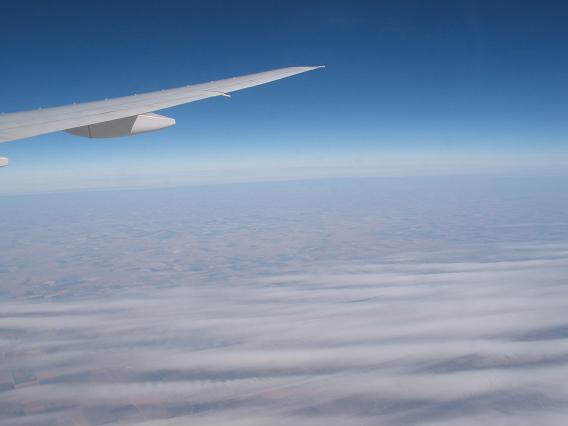 Soon, we got served with lunch which I had chicken. I watched a movie called Proud and Privileges. It was a fun one. The good thing is that I do not have a passenger right next to me so I can relax with more room. The cloudy weather finally ended near Dodge City, flew over Spokane, WA. I was taking many power naps so I missed Vancouver and soon it reached to the Pacific Ocean. Flew near by Anchorage. But not too close due to a volcano activity, as passing the International Dateline, we were served with a small sandwich, and I watched another movie, the greatest game ever played. It was a movie about golf players long time ago. I have still 5 hours more to go. The plane started to fly at FL300, then 320, and now it is 380. The outside temperature is about -50degrees.