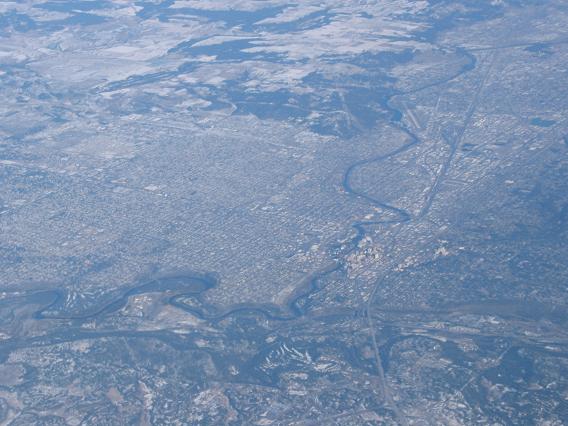 I boarded American Airline AA125, a Boeing 777 on time. It is always the most exciting time getting into a big two isled plane. The cabin is, well, clean and see the blanket and pillow available at the seat with audio visual entertainment system. I sat there and thought, here I go. The outside was about -2 degrees C, so the airplane had to be deiced. Although the plane left the gate on time while explaining all the safety procedure and stuffs, the whole process took about one hour so the takeoff time was about 1:00pm at CST. Considering the boarding started from 11:30am, I waited for 1 hour and 30 minutes. (The plane also burnt that much fuel too...)