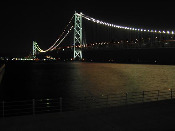 Woke up at 6:00am, went to work on time. Because today is the last day, I spend whole afternoon taking care of very important mission. Got out from the company around 8:30pm. My coworker took me to Akashi, where Akashi Kaikyo Bridge is located. Akashi Kaikyo Bridge, is a structure connecting between main island and Shikoku island. There are few more bridges to get to the other side. I was told that to just cross the bridge, it will cost about 4000Yen, which is like $37. If I drive on Kansas Turnpike system, I could make a round trip between Kansas City and Oklahoma border and still get some change…
