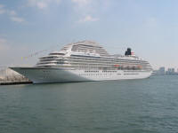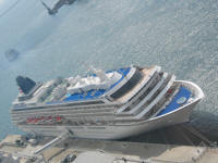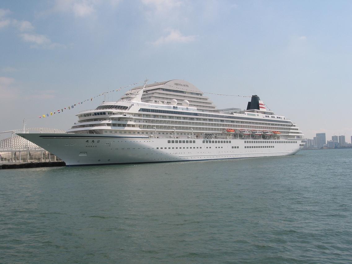 Mosaic, a shopping mall Asuka II, a newly christened cruise ship in Japan