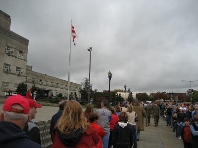 On the way to the The regular stuffs were going on, like prayers, and some announcement. As I passed the start line. I get to see the scarlet wave getting ready. the anthem was song and I saw a couple of MV-22s making a flyby. This was my first time seeing them. It was pretty neat.