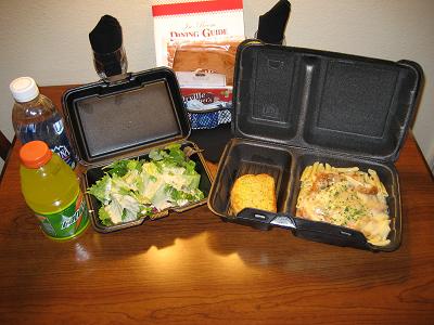 I went back to the hotel straight. On the way, I saw many people wearing medals, and the restaurant planning on to visit is packed. I arrived to the hotel and took a long, hot shower. I had to wait until 5:00pm and made a phone call to place an order. They forgot mine so I got a beer for free. I had a regular hamburger with fries with it. It was plenty for me. Because I picked up some drinks