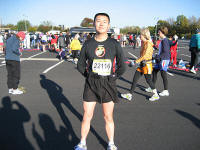 The daylight saving time is over now. I woke up at 5:30am, stretched my body and headed to down stairs. I had some snacks in my room but I was able to have hotel's breakfast around 7:30am before I leave to go to the marathon. I checked the outside air, it was pretty cold, but I decided to go with a long sleeve and short pants. I had to wear glove and warm up wear to keep my body heat. The outside is sunny, and cool. I walked toward the memorial from the hotel, I saw so many people around me. I talked to few of them. I took some pictures of the Iwo Jima monument, and headed to the Runner's Village.