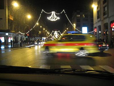 Night time in Brussels, the picture showing an ambulance