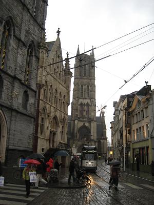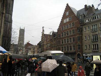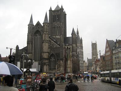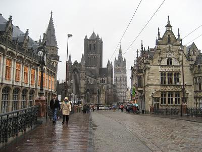After driving in rain. We stopped at Gent. This place had three big churches, and I went inside of one of them. There were tombs of Kings and some artifact like drawing and such. The rain was over when we come out and stayed that was for the rest of the day. In the evening it began foggy a little.