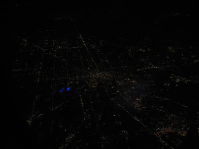 The plane arrived to DFW 4:10pm (It’s only 2.5 hours flight but changes time zone twice, so felt longer than actual. Had 10 pieces of chicken nuggets from McDonald’s. The plane to DTW tookoff on time, I could see the outside for a while but getting darker and darker. About one hour into flight, I start seeing lights of the town (before that, moisture in the air prevented me from seeing the ground because it was so hazy) Passing Indy around8:10pm. I could not tell, though.