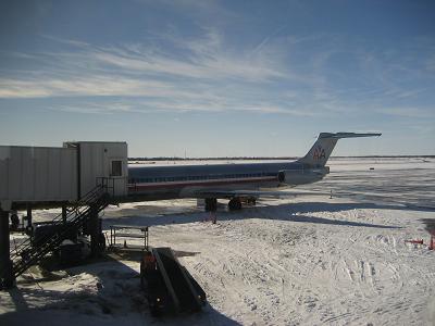 I sat next to brothers from Arizona, spending their Christmas break in Wichita. They wanted to know about the Japanese car magazine I was reading. So, a small Japanese 101 class was in session. They knew some nasty Japanese so I had to explain the meaning for those words (I am not going to tell what words they knew...). After a short flight, finally arrived in Wichita. The city is totally snowed up. I guess I have not seen the city in snow covered for a long time. The plane landed still snow covered runway, used a lot of distance to stop. The jet way must have been extended so there was an extra turn to take before getting off but once I got inside of the terminal, very much all the stuffs came back to me. I walked toward the exit to get my bag, and saw a bit of changes, there is an retailer added to next to a sports bar, and there are more chairs for laptop stations.