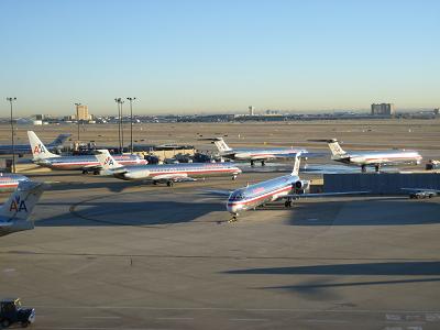 Arrived at DFW (Taking off in the left, three waiting for landing)