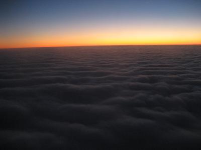 Plane tookoff, break through the low cloud, I still get to see some light over the horizon.