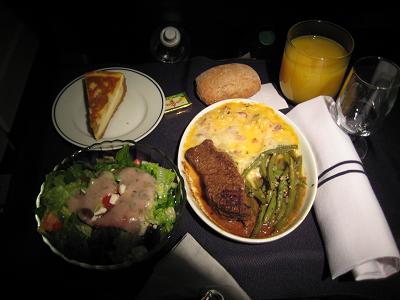 Leaving DFW to San Diego near sunset time. First class dinner, the beef was too dry and not that good...