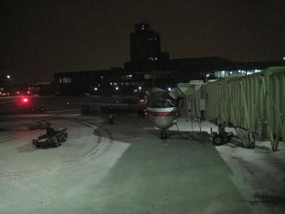 I guess changing flights and delays are not avoidable these days. The plane again, had to be changed so we moved from terminal A to D, and waited until 6:00pm to board. Not only they had to re-bag everything but also needed to fuel. The plane did not take off until 7 something. Plane flew by Little Rock, AR, Indianapolis, IN on the way back. The ride was quite bumpy so I had to eat quick. The passenger next to me was not so old but looked very established. He used to work for AT&T and now owns 20 houses. He does not have work to live. Wow... The plane arrived after 10:00pm and Detroit was under snowy weather. It had hard time parking because the plane kept skidding.