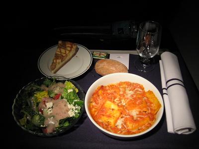 Dinner; salad, ravioli and wheat bread. Back in Detroit, snow falling at the time.