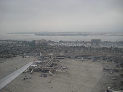 The connecting flight was very my chasing the sun light. The outside was already getting dark as the plane left the gate. Had dinner, and by the time when we arrived at San Diego, it was already dark.