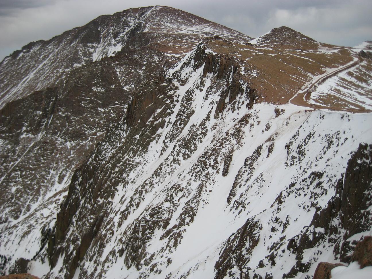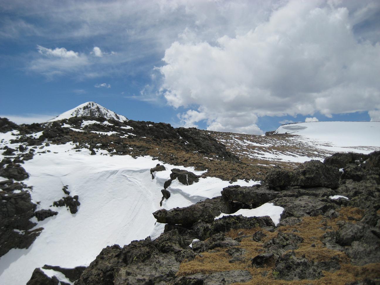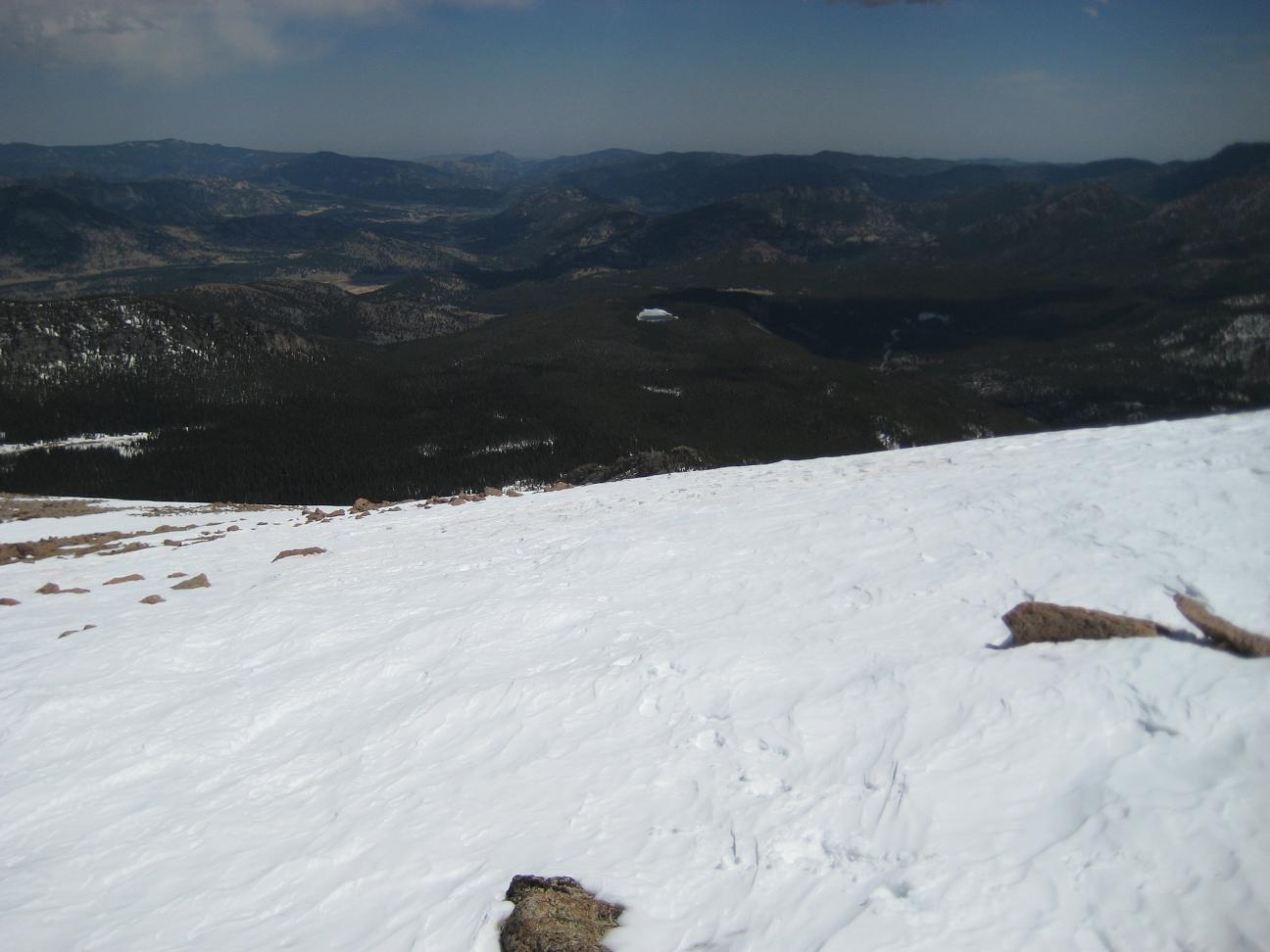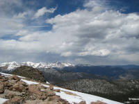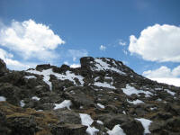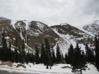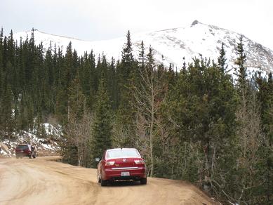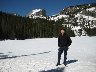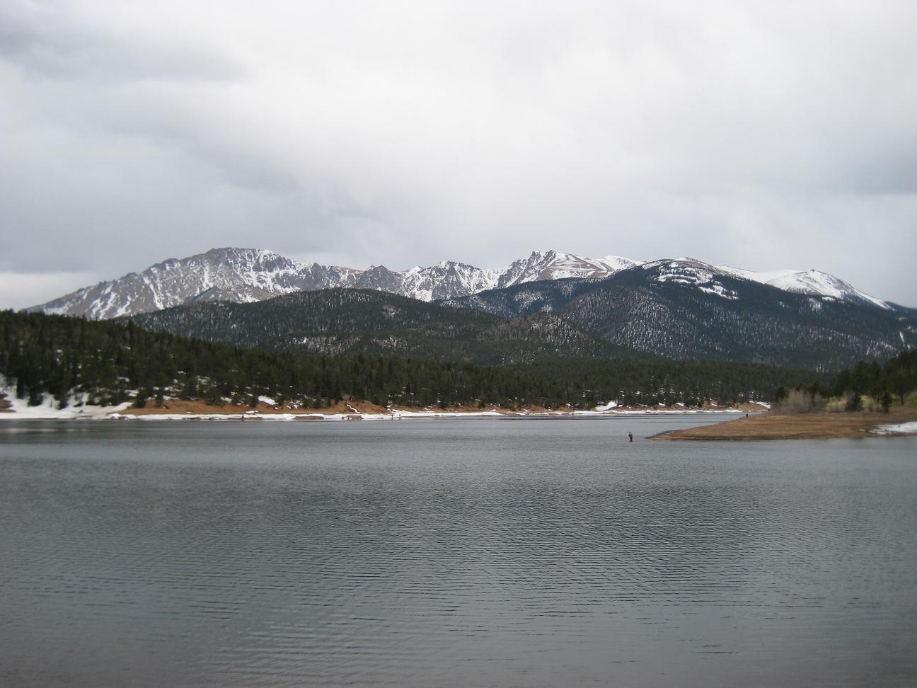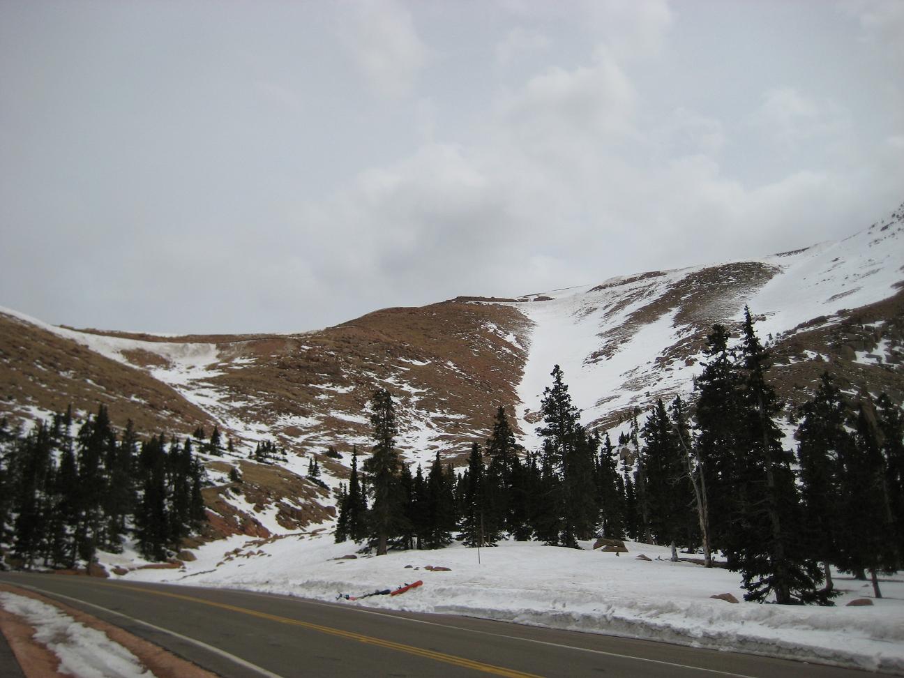 drive up slowly, made stops to take pictures, also I picked up a guy on the way who wants to go back up and ski down. It was nice talking with him. He used to live in Detroit. Reached at 16 miles mark, see a park ranger blocked the way, so I had no choice but climbing up at Devil's playground. Which is at 13,000ft. I could see the summit which I cannot go... The weather was not well, I needed a wind proof jacket. No rain was falling but I did not like the condition. I get to see some people going down the hill with ski and snowboard Stopped at a lake for a while While I was trying to climb up, I was totally out of breath, had hard time climbing up, but I made it through. I could taste the all different symptoms of altitude sickness, shortness of breath, dizziness, headache, loss of balance. After reaching to the highest point there, I looked around and saw the weather is coming down, Stated to head down after 2:30PM, got to I-25 by 4:00PM, by the time when I got back from the road, my headache is getting better. The rule on the downhill portion of Pike Peak is to put the gear at lowest to prevent the brake to have vapor developed inside of