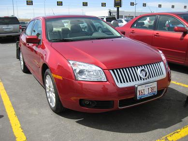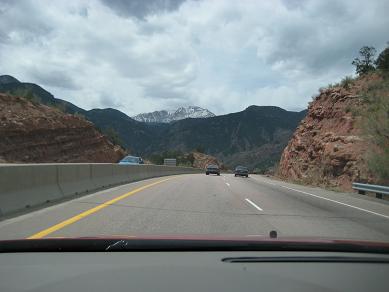 The plane arrived at the airport at 10:00AM, walked down to downstairs and took a train to the main concourse. Denver International Airport has West and East wings at the main building, and three separate gate complexes are connected by an underground transport system. The train played some short music when opening and closing the doors, it was pretty cool and makes me energetic for a bit. After getting off the train, I went up to the ground level, I had to wait for a while until the bags came out. Got a ride on Hertz shuttle bus, which stopped for extra 5 minutes at another terminal. They insisted I should upgrade the car to an SUV but got a Mercury Milan anyway because of the price will increase by $12/day. I even skipped the navigation system option to save money. Getting a mid-size car was the best deal at the time. Since this is not a business trip, I had to buy insurance. Left the parking at 10:30AM. As I was driving out, I could see the all the Rocky mountains and also the Pikes Peak which I was hoping to get there.