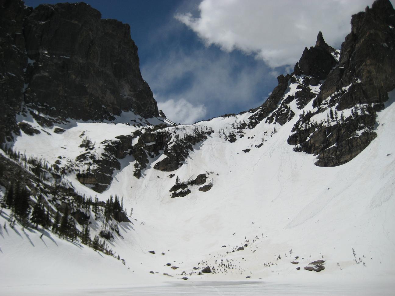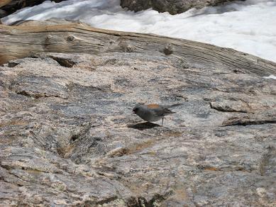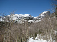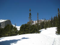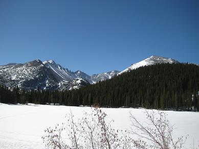 To go to dream lake, I needed to climb up hill and round a big rock, it was confusing without seeing the right track. This time again, I hope I had snow shoes because the trail was not in good shape, sometimes even scary. Arrived at dream lake, then kept walking on the trail. Finding the emerald lake was a lot easier. I get to see a couple of skiers coming down on the wall, saw a couple of birds around me. I had a couple of bag of small chocolate, pieces of beef jerky for my lunch and All the lakes are still frozen. The surroundings were very calm and quiet too.