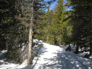 Began climbing 10:00AM, rested for every 30 minutes, the weather was quite nice and warm, so I was walking with t-shirt On the way up. I was passed by a guy with ski, advised that I should have snow shoes. Also the guys coming down from the mountain also told me that the condition of the hill is not good without proper gears. Snow on the field was sometimes packed but also some are very loose, I had to Decided to leave at 1:00PM, I was coming down okay but the snow was very loose, and I could not walk without getting stuck. I even lost the trail and was wondering the forest for 15 minutes...