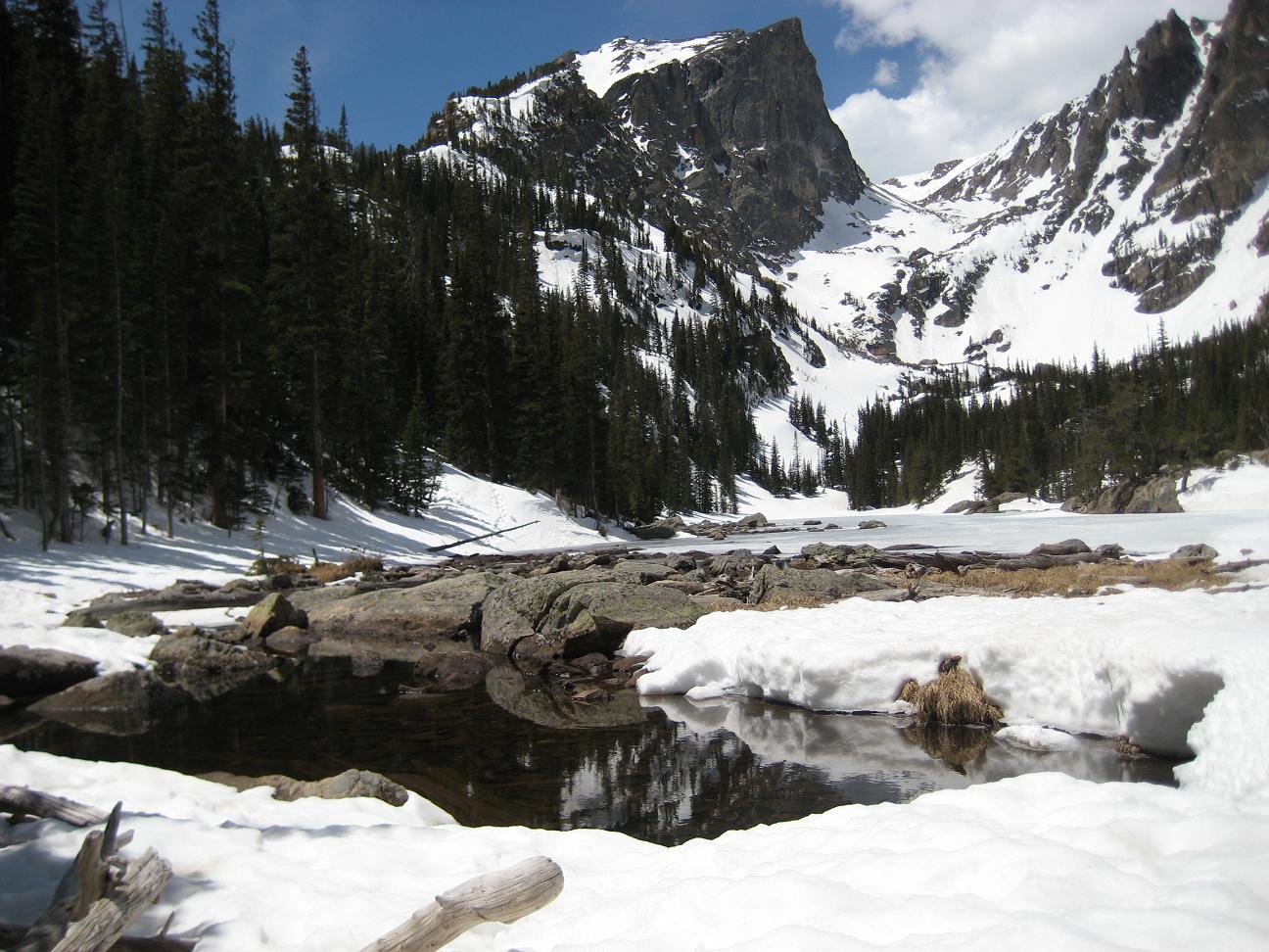 Arrived at Nymph lake at 11:23AM, and I could not find the way to the Dream lake, so I had to give few tries just following different footprints, and finally got the right one, which I needed to