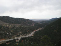 Since when I arrived at the airport, I was getting a bad headache, maybe because of the altitude. Denver is located at almost a mile high from the sea level. While driving to the south on I-25 from Pena Rd, I could see the clear sky and mountains on the horizon. Seeing AF academy on the right hand side, I kept driving, and arrived to Colorado Springs, At 12:30PM, stopped at McDonald's off the I-25 on the way to the Pikes Peak. The place was in a such a chaos, because of the messed up order. Several cars were waiting outside to get their orders, and more people inside before me waiting for their orders. The manager had to give away a bunch of free stuffs, it was a special hour... After eating 10 pieces of nuggets, I did not feel like finishing up the fries. I was drinking cola but did not work on my headache well. Anyways, afternoon weather in the mountain is so unpredictable, I continue driving to get there as soon as possible.