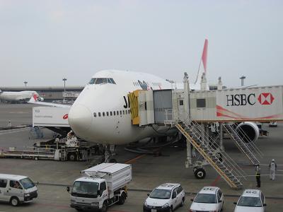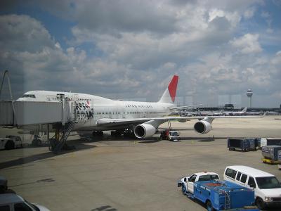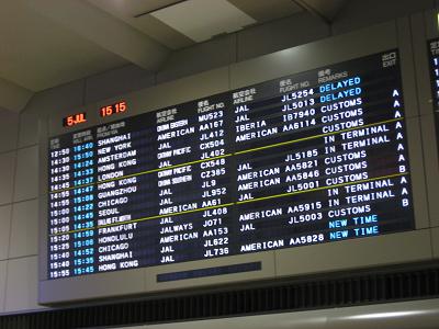 JAL 9, at Chicago O'Hare JAL 9, arrived at Narita after a long hour of flight The plane took off, since I was sitting in an aisle seat, I don't get to see outside. However, JAL's B747-400 has a set of on board cameras so I can see the outside. Soon after reaching to cruising altitude, Chicken Curry was served around 2:00pm in Chicago time. A scary thing happened right after the lunch. I saw a man stood up, going to the restroom then fell backward, passing out. The passengers around the guy had to call a flight attendant, then soon he was administrated with portable oxygen. One concern I had was maybe we are going to make an emergency landing, which may delay the arrival to Japan, making too late in the day for me to see my mom. Well, he recovered soon and we can go on... Soon I fell sleep. During the flight, I thought about my mom because I was so worried, tears keep flowing out my eyes if I think about the how much time left to be with my mom. I still had my time set at Chicago time, so I remember been served with a couple of sandwiches around 8:00pm, fell back sleep, and breakfast around 2:30am. The plane readied for landing and touched down at Narita International Airport at 2:20pm local time. Another passport check as stepping outside. I walked toward the immigration, passing with no problem and waited for bags to come out at the baggage claim. Seems like all the bags not coming out soon enough so everybody had to wait for a long while. When the bags finally came out, I noticed that it was wet, maybe from the moisture but first I thought it was from broken wine bottle inside... Since the new regulation requires everybody to fill out a custom form, I filled one and took it to the customs. No question asked and I walked out the door.