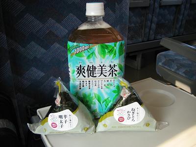 My breakfast, two rice balls, one bottle of tea