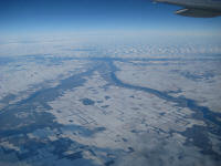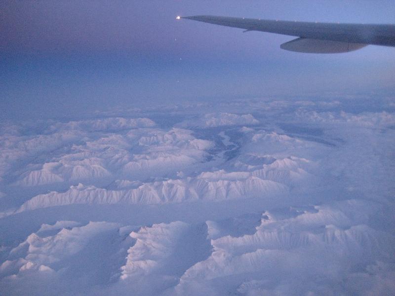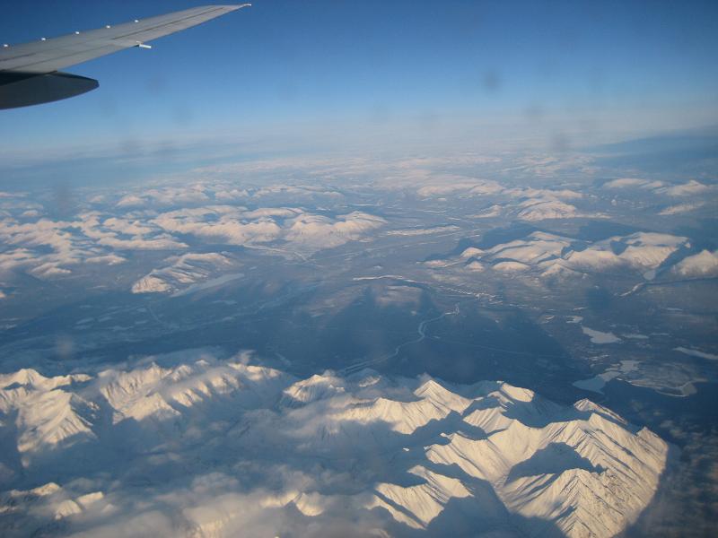 The boarding began at 10:20am on time at Gate L8. I was talking with my host family members over the phone when it started. After the boarding, I was chatting with a passenger sitting next to me, who is heading to Singapore for his two weeks vacation. While we waited, the captain announced there seems to be an issue with the plane, and the tail is tilted very low so they had to fix the issue. I was hoping that things get fixed soon but took a while so when the plane finally got pushed back, it was almost noon. While thinking about mom and wanting to come home soon, it was very tough time. The plane taxied to a runway and took off at 12:05pm toward west. Changed heading to Wisconsin. Passing St. Paul at 12:55pm, saw Mississippi river at 1:05pm, I could also see some lakes frozen. Flew by Fargo Fall at 1:13pm, passing Fargo at 1:20pm, Lunch served at 1:40pm. At 2:30pm, turbulence for about 10 minutes, then again 3:30pm another turbulence for about the same duration. By the time, we are flying at FL340 with outside Temp of -61deg, Arrived near White Horse at 5:00pm, reaching to Anchorage, AK at 5:45pm with FL360 with outside Temp of -47deg. Flew by the Kamchatka peninsula around 9:00am, then I get to see the first sight of Hokkaido at , 11:00pm, where we still flying high at FL380 with -51C. Breakfast served (Chicken Curry). Around 12:00am, the descending started, fly by the airport at 12:30am, and finally landed at 12:35am. The plane taxied to the gate.