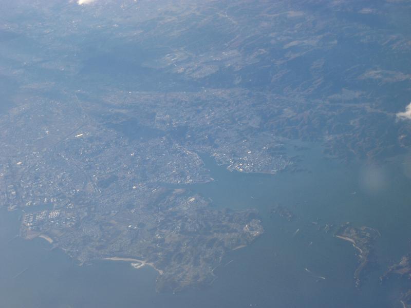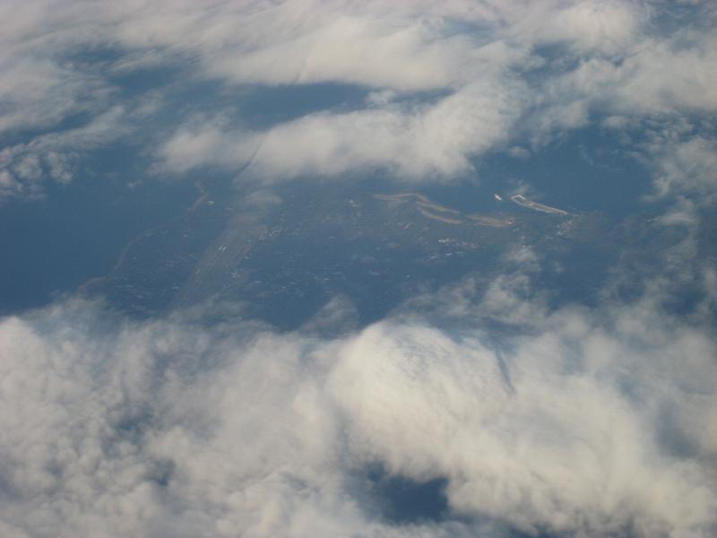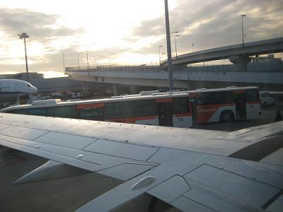 The boarding started for the first class seats. Since I am on general boarding, I had to wait for a while then the general boarding was called at 1:55pm. I walked down the slope to the gate. The plane used this time was a B737-400. Japan Airline had a quite nice seat (designed by Recaro, a famous car seat manufacturer). The plane get pushed back from the gate, starting the engines then departed at 2:05pm, taxied to the south end of the airport then took off to the north. While gaining altitude, the plane turned left to circle around the airport. I get to see the overview of the airport. The plane kept its course to east, and start heading to the Narita Airport. The plane flew over Toyohashi-city, then lake of Hamanako, the coast line was over when reaching to Omaezaki, and I get to see Oshima Island but mostly hidden due to the clouds. The plane kept going to east then changed the heading to north, after passing the airport to left, made a left turn for the base, and then to the final. It was pretty hazy so I barely see the outline of it. Landed at 3:00pm, then taxied to a ramp at 3:10pm. I was wondering why we are stopping right here?! Soon a couple of airport shuttle bus arrived by the plane and people started to get off. The bus took us around and arrived to the nearby building, we walked into a baggage claim. I did not have to do anything since my bags will go to Chicago straight. Passed security check, then immigration. It was very much empty. I guess due to the timing I was arriving and it was nice.