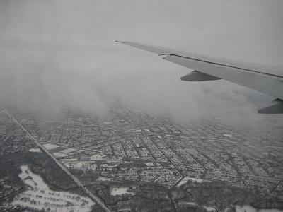 The boarding started without a problem around 8:20am. I could see a plane already finished deicing. The plane was getting pushed back from the gate at 8:35am, but ground stop was ordered at ORD so we had to wait but the captain changed the route which divert to Ft Wayne, IN instead of flying straight to Chicago. This will take another 20 minutes but allow us to depart with a shorter wait. The plane took off in the air around 9:00am, about 40 minutes late but the flight itself was smooth. The plane climbed to a clear sky, but getting some cloud cover as approaches to Ft Wayne area, around 9:35am. The plane approached to the airport from east, passing north of Chicago downtown, and made landing at 8:45am, almost on time. Taxied to the gate and we got off the plane. I guess it's 18F outside, like announced in the plane.