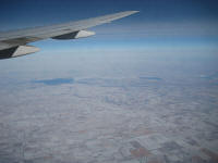 The dinner served at 8:30pm, I had Katsudon, 12:30am turbulence over Alaska. Just as announced but did not last too long. I fell sleep since I needed some rest. I woke up at 3:30am b, the plane was flying near Edmonton, at 11,277m, -60 Deg, 1000km/h. Fell back sleep... At 3:10pm, reporting -4 Deg, 60 miles away, the plane flew south of the airport, going toward Lake Michigan, turning to left for 180degrees to join the landing pattern. Landed at 3:30pm, the outside look pretty cold since it is mostly snow covered. Arrived at the gate at 3:40pm, walking down the stairs to proceed to the immigration. The line for the U.S. Citizen was almost over so I get to go through their window. passed the immigration at 4:10pm with a word, "good luck" since he knows that I work for an automotive company...