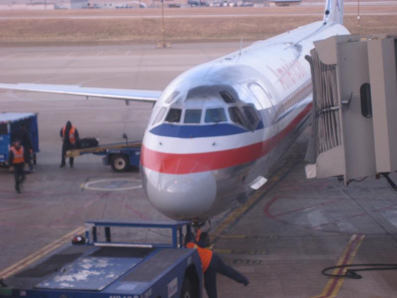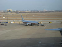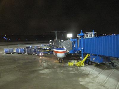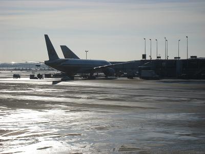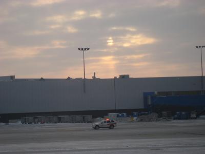 Took a SkyLine to the terminal A from D, and walk toward the gate. Arriving at the gate at 4:15pm, but had to I settled myself a few gates away where a free laptop station is located to use my PC. I checked emails for a while then start updating my blog. Today, I have seen many people in uniform walking around the terminal. I guess the change to a new year meaning new assignments for them. The boarding time was changed to 6:45pm so it gave me some extra time. I went to McDonald's to eat my dinner around 5:30pm (which is already 6:30pm in Detroit). While I was waiting, I saw a plane with weird dark marking by its cockpit, the plane had windows opened so I wonder what happened. The sky was getting dark also...