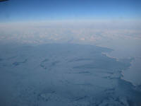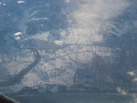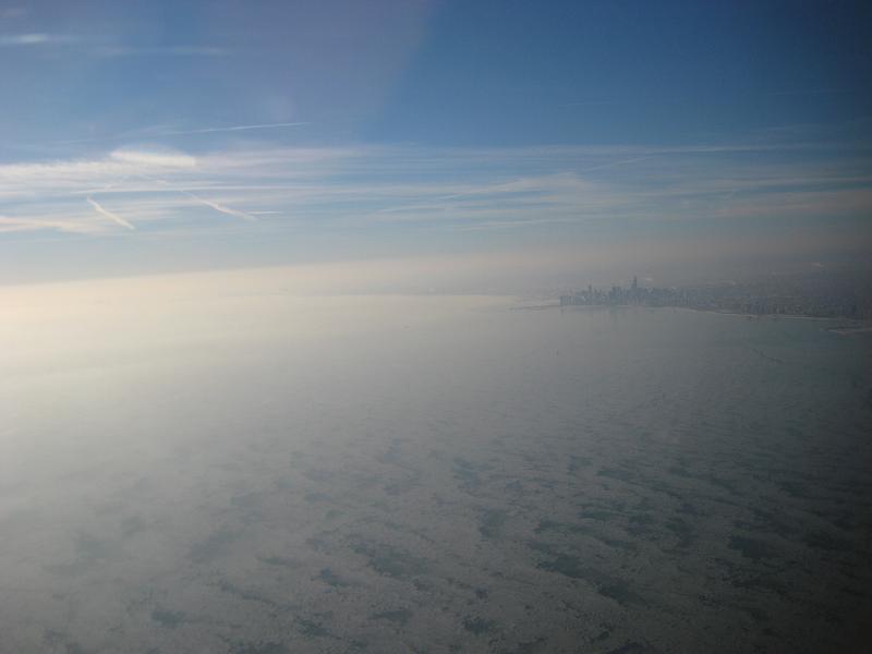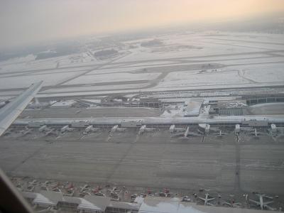 The plane took off to south on runway 22L at 9:00am and it cleared low cloud quick. Now I can very much enjoy the sun light for the rest of flight. The plane continued to fly west but I was not quite sure where I was heading, because of the overcast cloud preventing to see the geography. Once it started to come down, I could see it approached from the northeast of Chicago, flew by the north of downtown. Some portion of the lake was frozen. The plane landed at 8:50am CST on time, and taxied to the gate and arrived at 9:00am. The jet bridge was having trouble moving so it took another 10 minutes before we can get out of the plane.